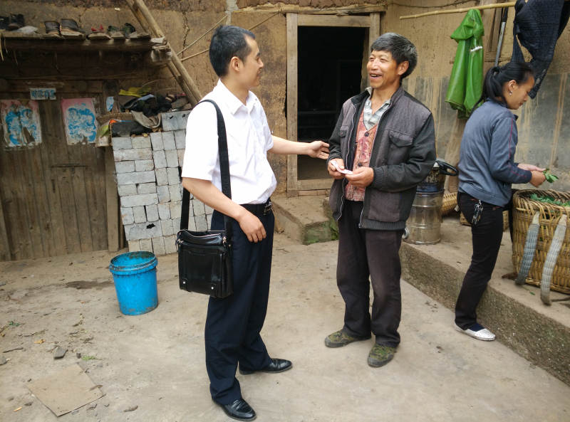 田永安(左一)与谢帮银父亲亲切交谈