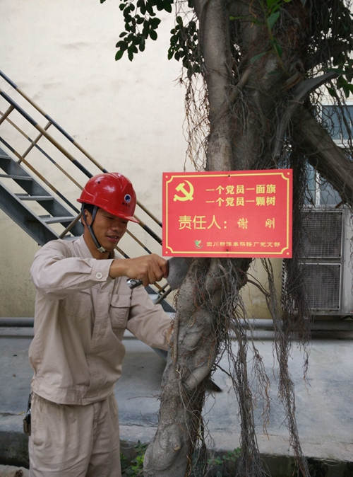 近日,四川betway88西汉姆联磷铵厂在全体党员中开展了“‘树’形象亮身份”活动,将厂区内的80颗榕树全部细化给每个党员,由党员负责浇水、修剪等日常维护工作,并在榕树上悬挂责任牌,接受员工监督。