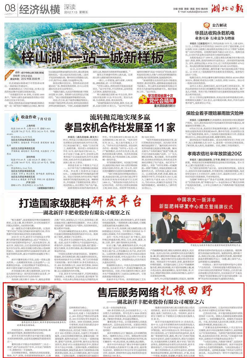 江苏启东市场,洋丰复合肥连续两年销售徘徊在1100吨,营销人员调查发现肥料销售品种单一,经销商赚钱不多、积极性不高是原因。于是,农化部派人赴启东测土配肥,针对性提供多种配肥,销量迅速上升。