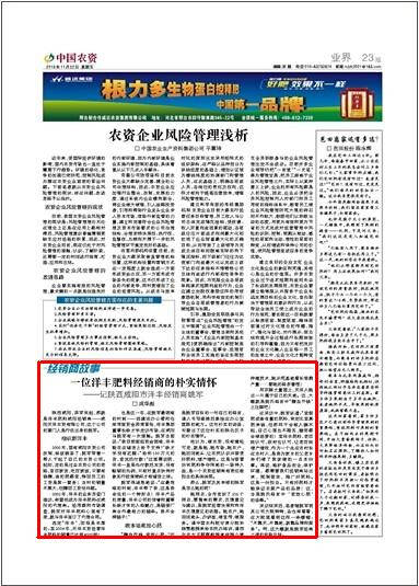 他认为,做农资,没有捷径可走,就是跑,跑市场,跑农户,跑田间地头,让农民认识并接受好肥料,增产增收。这是与假冒伪劣肥料争夺阵地的一场持久战,是一个农资经销商有责任敢担当的具体体现。
