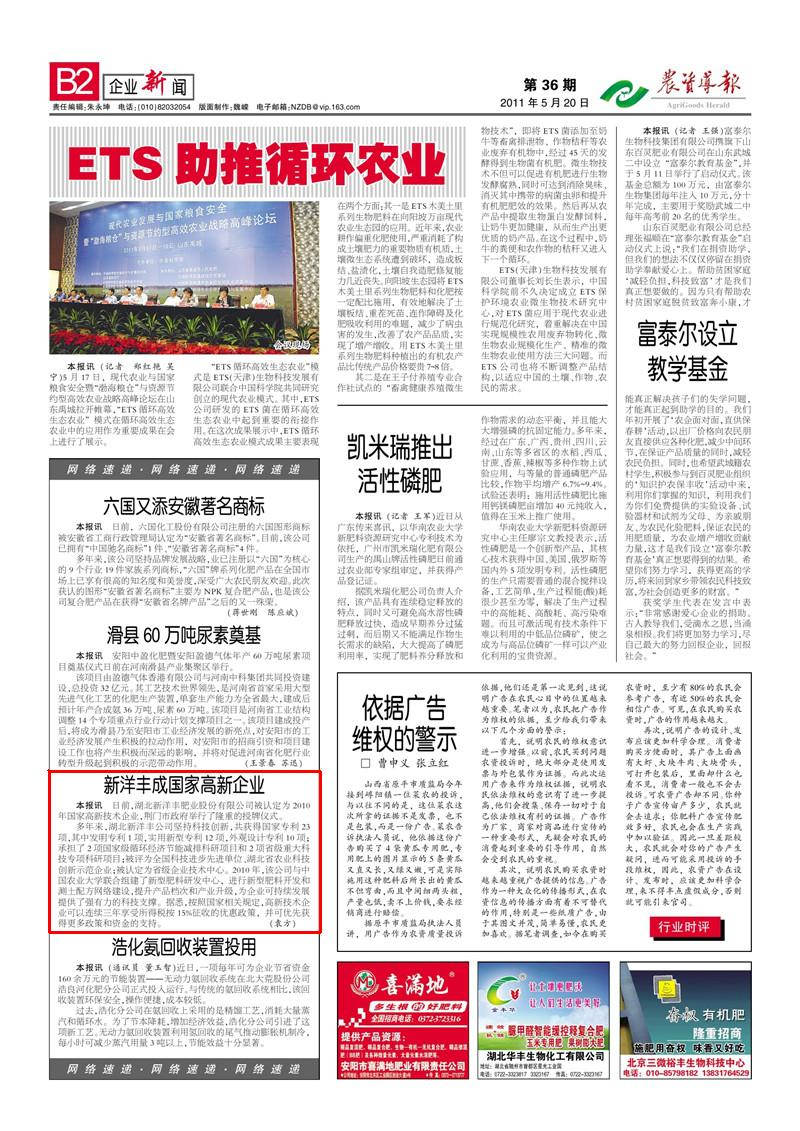 多年来,湖北betway88西汉姆联公司坚持科技创新,共获得国家专利23项,其中发明专利 1 项,实用新型专利12项,外观设计专利10项;承担了2项国家级循环经济节能减排科研项目和2项省级重大科技专项科研项目;被评为全国科技进步先进单位、湖北省农业科技创新示范企业;被认定为省级企业技术中心。2010年,该公司与中国农业大学联合组建了新型肥料研发中心,进行新型肥料开发和测土配方网络建设,提升产品档次和产业升级,为企业可持续发展提供了强有力的科技支撑。据悉,按照国家相关规定,高新技术企业可以连续三年享受所得税按15%征收的优惠政策,并可优先获得更多政策和资金的支持。