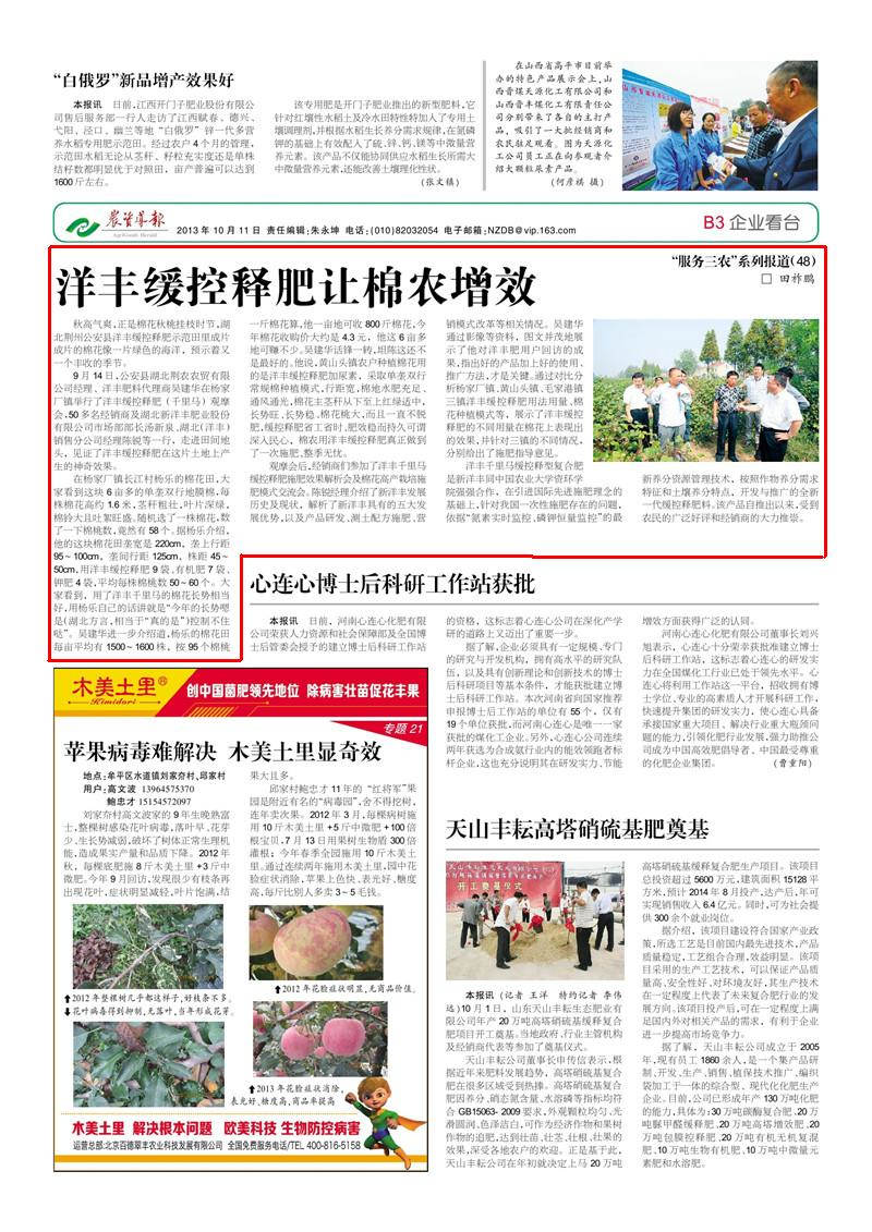 洋丰千里马缓控释型复合肥是betway88西汉姆联同中国农业大学资环学院强强合作,在引进国际先进施肥理念的基础上,针对我国一次性施肥存在的问题,依据“氮素实时监控、磷钾恒量监控”的最新养分资源管理技术,按照作物养分需求特征和土壤养分特点,开发与推广的全新一代缓控释肥料。该产品自推出以来,受到农民的广泛好评和经销商的大力推崇。