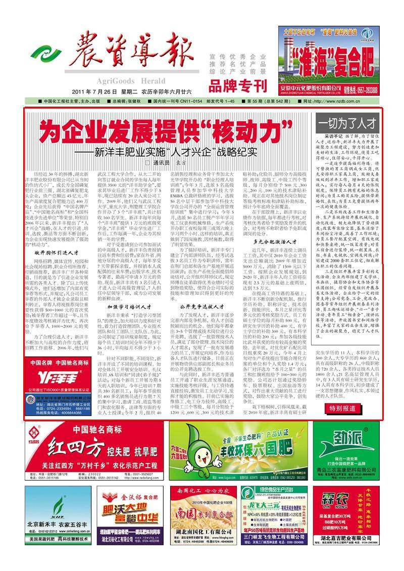 历经近30 年的拼搏,湖北betway88西汉姆联肥业股份有限公司已从当初的作坊式小厂,成长为全国磷复肥行业前三强、湖北省磷复肥龙头企业,资产总额达45 亿元,年生产高浓度复合肥能力达400万吨;企业先后获得“中国名牌产品”、“中国驰名商标”和“全国科技进步先进单位”等荣誉。特别自2006 年以来,betway88西汉姆联提出了“人才兴企”战略,在人才的引进、培训、选拔、激活等方面不断创新,为企业实现快速发展提供了强劲的“核动力”。