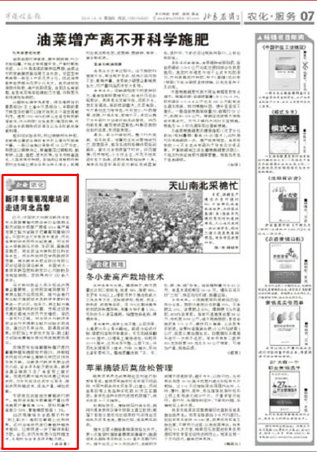 此次观摩培训会既展示科学(测土配方)施肥在葡萄上应用效果,还对当地农民进行葡萄种植技术培训,让农民进一步了解洋丰配方肥。会后,农民纷纷表示在种植玉米、水稻时也会首选洋丰配方肥。